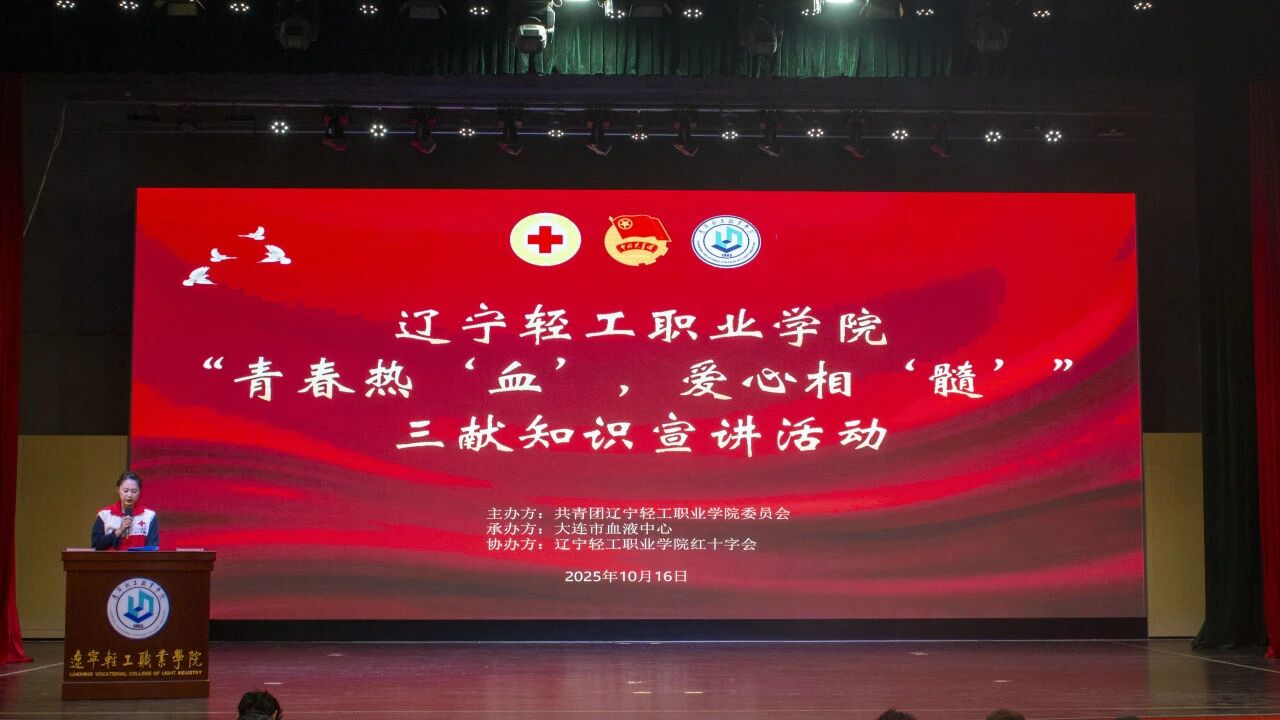 为深入弘扬“人道、博爱、奉献”的红十字精神,普及无偿献血知识,引导广大青年学子勇担社会责任,10月16日下午,辽宁轻工职业学院在益心宫礼堂开展“青春热‘血’、爱心相‘髓’”三献知识宣讲活动。本次活动由校团委主办,大连市血液中心承办,校红十字会协办。