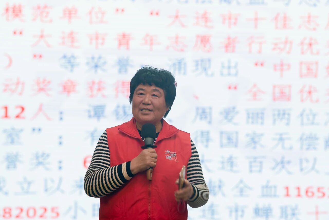 活动现场还迎来了一位用行动诠释“坚持与奉献”的榜样——大连市无偿献血者志愿服务队队长谭锡博。谭队长自1984年起,累计献血高达326次,献血总量达150800毫升,并荣获“全国无偿献血促进奖个人奖”“国家无偿献血奉献奖终身荣誉奖”等国家级荣誉。她用亲身经历讲述了每一份热血背后的故事,其无私大爱和坚定执着深深打动了在场的每一位师生,礼堂内掌声雷动,敬意满满,极大地激发了同学们参与公益的热情。